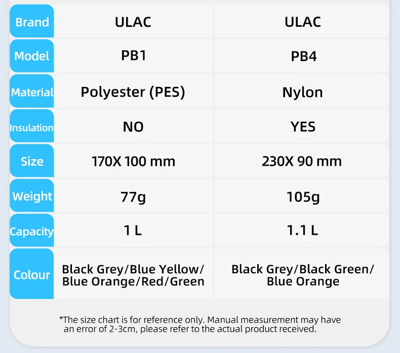 Capacity: PB1 = 1L, PB4 = 1.2L